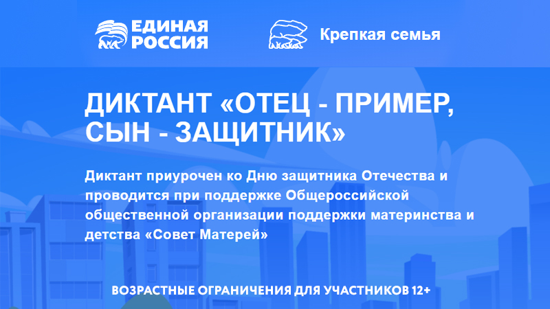 семья Жителей Котовска приглашают к участию в онлайн-диктанте «Отец – пример, сын – защитник» Дата публикации 25.02.2026 11:35. Подробнее