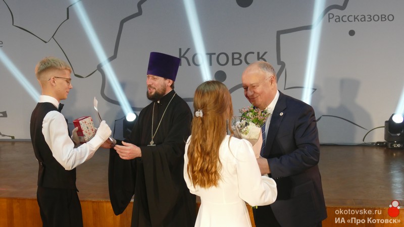 - Сретенский бал подарил каждому из нас море прекрасных эмоций. Для нас радостно, когда здесь загораются два сердца, две половинки становятся одним целым. Благодарю главу Котовска Алексея Михайловича Плахотникова за то, он поддержал отца Кирилла с этим прекрасным предложением. И еще хочу сказать, что мы часто слышим, что церковь должна быть отделена от государства. Но это мероприятие стало результатом совместных трудов церкви и государства. Позвольте передать слова благодарности владыки Феодосия за ваш общий вклад в то, что сегодня церковно-государственные отношения укрепляются на котовской земле, - поделился иерей Александр Алмаев.