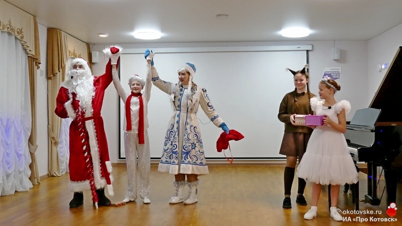 В финальной сцене театралы даже объявили конкурс на современных Деда Мороза и Снегурочку, но традиционная версия главных новогодних героев победила. И, конечно, зимний волшебник никого не оставил без подарков – все участники концерта получили ароматные и яркие мандаринки.