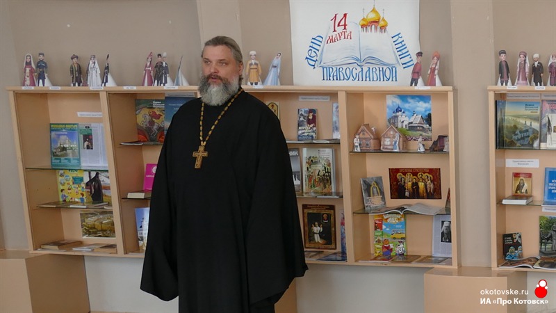 На встречу со школьниками пришел и настоятель Благовещенского храма Котовска Иоанн Масягин.