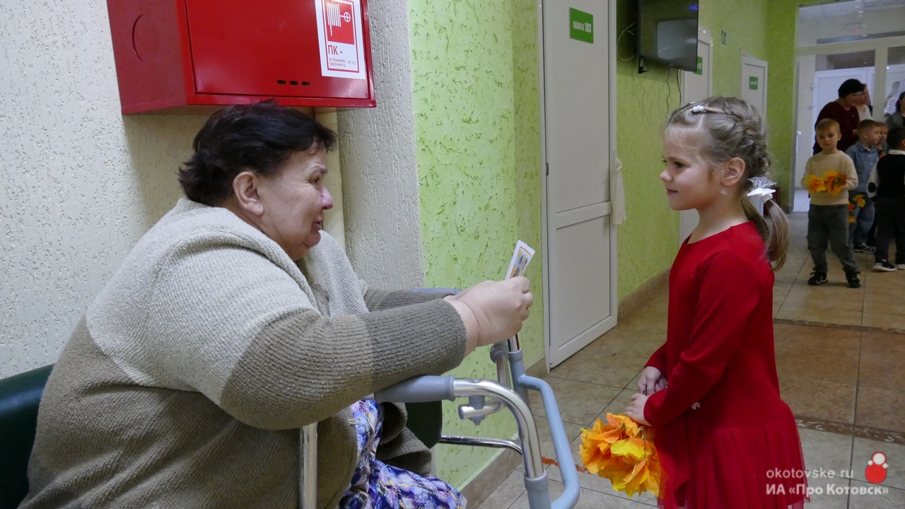 В рамках муниципальной инициативы по развитию детского волонтёрства в Котовске, разработанной в поддержку нацпроекта «Семья», ребята подготовительной группы №9 детского сада №14 «Красная Шапочка» посетили отделение сестринского ухода Котовской городской клинической больницы, чтобы порадовать дедушек и бабушек осенним концертом и добрыми словами.