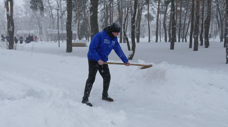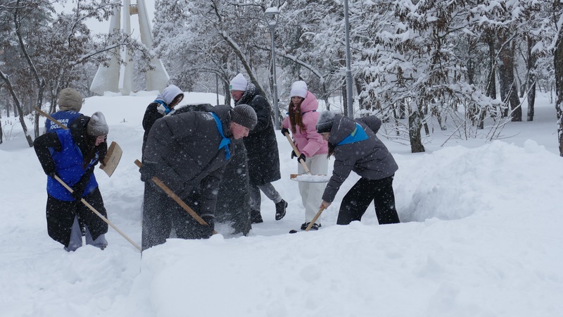 В условиях аномального снегопада, продолжающегося уже вторые сутки, волонтёры города вышли на помощь коммунальным службам.