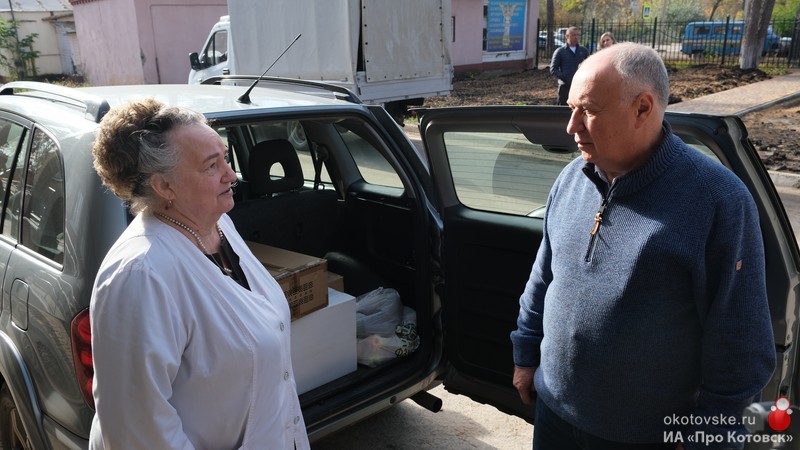 Помощь передали главврачу Котовской горбольницы, депутату Тамбовской областной Думы от Котовска Олегу Ямщикову глава города Алексей Плахотников и депутат Котовского горсовета, руководитель волонтёрской группы Надежда Ветрова.