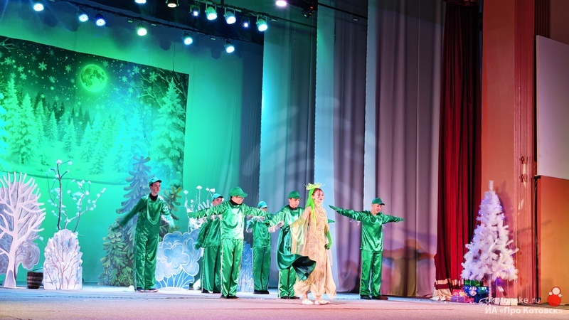 В театрализованном представлении свои таланты показали 62 юных дарования. Воспитанники театральной школы подготовили для зрителей спектакль с участием лесных жителей, Деда Мороза, его помощников, инопланетянина с далекой планеты и отрицательного персонажа — Зеленой Тоски. Юные театралы погрузили собравшихся в сказочный мир волшебства и веселья, в котором добро победило зло.