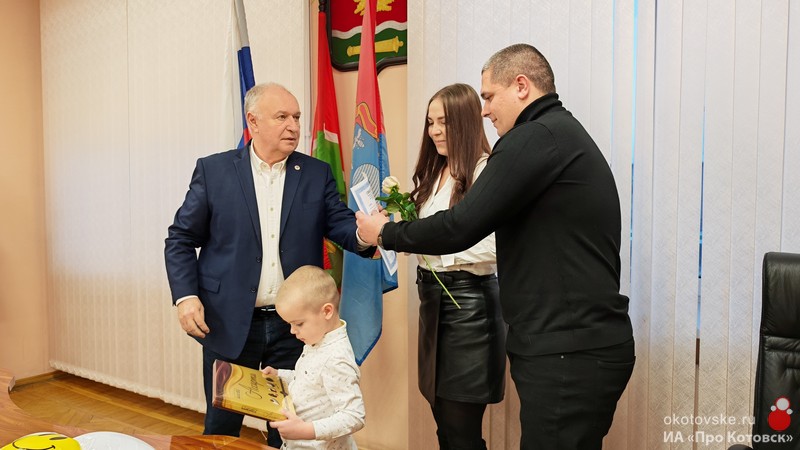 Вручение свидетельств прошло в администрации города, где виновников торжества поздравил глава Котовска Алексей Плахотников.