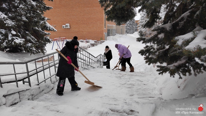 С 9 часов утра представители городской администрации и бюджетных учреждений вышли на расчистку ступеней, дорожек и входных групп.